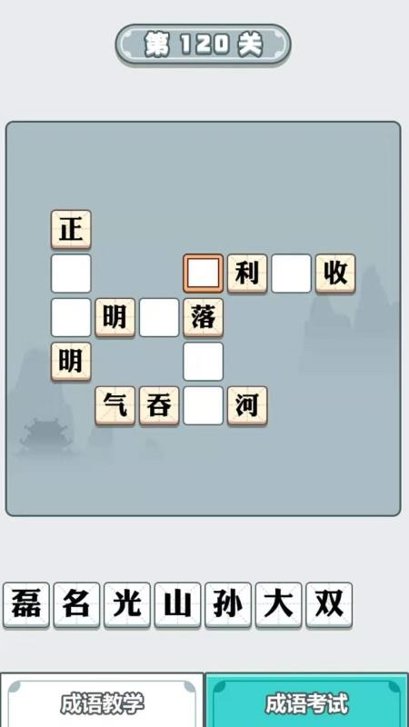 4、在成语考试界面中,可点击文字,将成语补充完整
