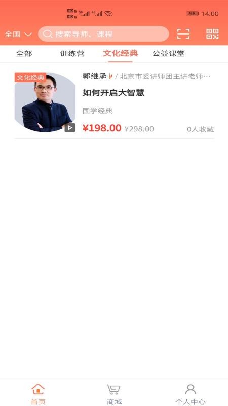 6、为用户提供详细的课程分类,包括训练营、文化经典和公益课堂等,方便用户查找;