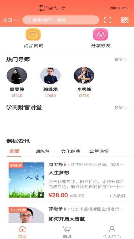 红学时代app是一款为用户提供各种培训课程的软件,让用户能够学习到各种类型的知识,满足不同用户需求;用户通过软件能够找到多种类型的培训课程,从而能够根据自己的学习需求选择合适的课程进行报名购买,快速提升用户的知识水平;在软件中用户还可以看到各个导师的详细信息,从而能够选择更加靠谱的导师学习导师的课程,让用户可以更放心的学习;在这里用户还可以看到各个课程的详细内容,帮助用户更全面的了解课程,方便用户进行课程对比;快下载这款软件试试吧,方便快捷的学习各种课程,了解更多知识。