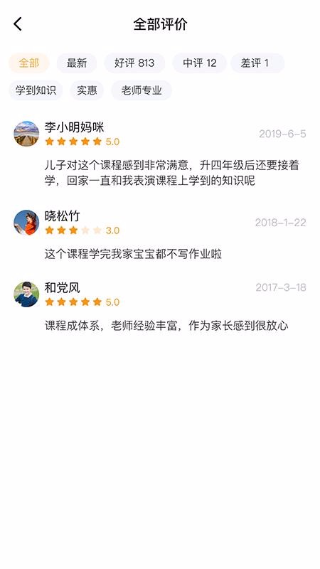 3、选择课程即可查看展示的评价,进入全部评价页面就可以浏览分类标签