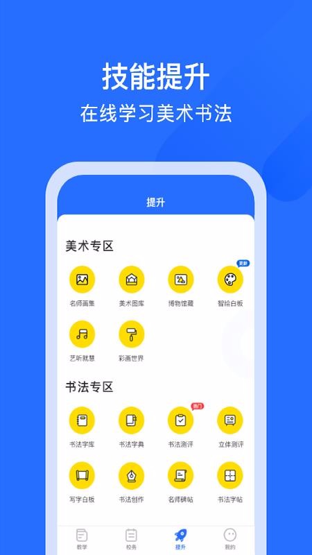 4、点击提升,立即查看美术专区和书法专区内容,及时提升