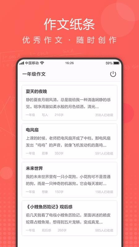 6、收藏平台的作文范本,在作文纸条里面找到感兴趣的作文并阅读的时候就能就爱你过期收藏;