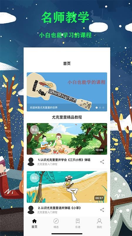 2、应用中有多种小白课程,让刚接触尤克里里的用户也可以快速的入门;