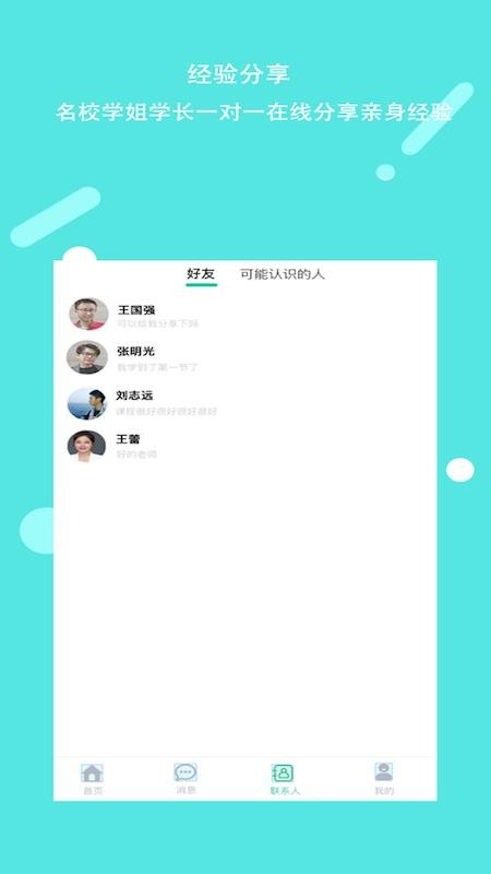 5、可以添加手机通讯录中的好友,在可能认识的人页面立即找到好友的信息,在线添加;