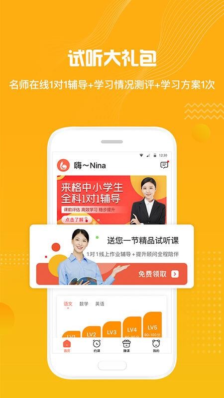 2、在应用的首页中,推荐免费试听的课程信息,立即试听课程