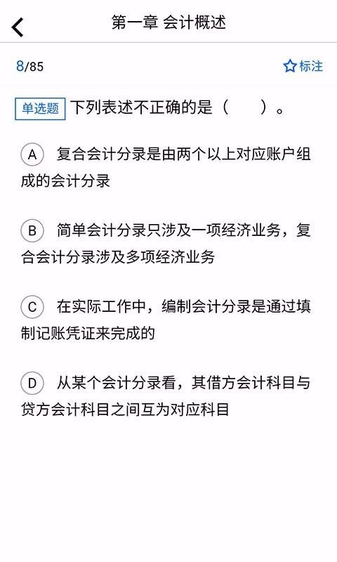 6、在线练习试题时可以自主选择标注,标注成功可以随时查看复习;