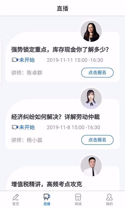 3、能够随时推送直播,支持自主选择报名,可以按时观看相应直播;