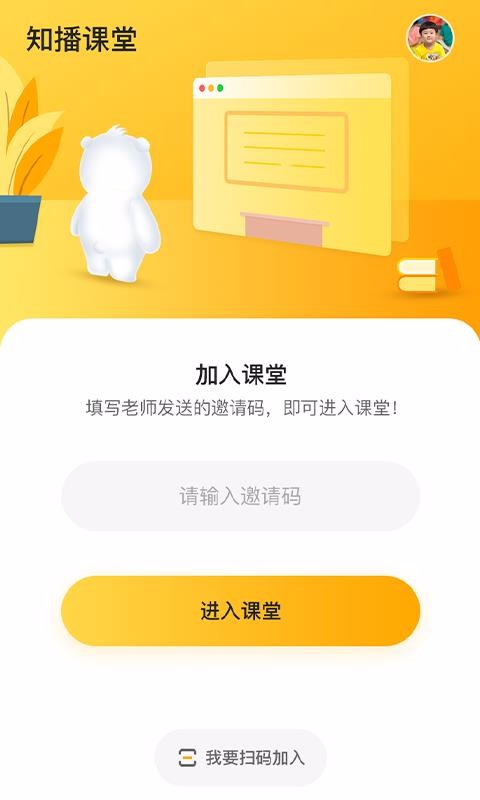 2、登录至学生界面后立即输入老师发送的邀请码,加入课堂