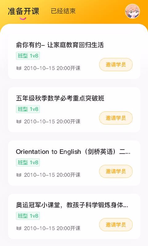 5、老师可以自主点击邀请学员,能够随意开课,可以及时共享课件;