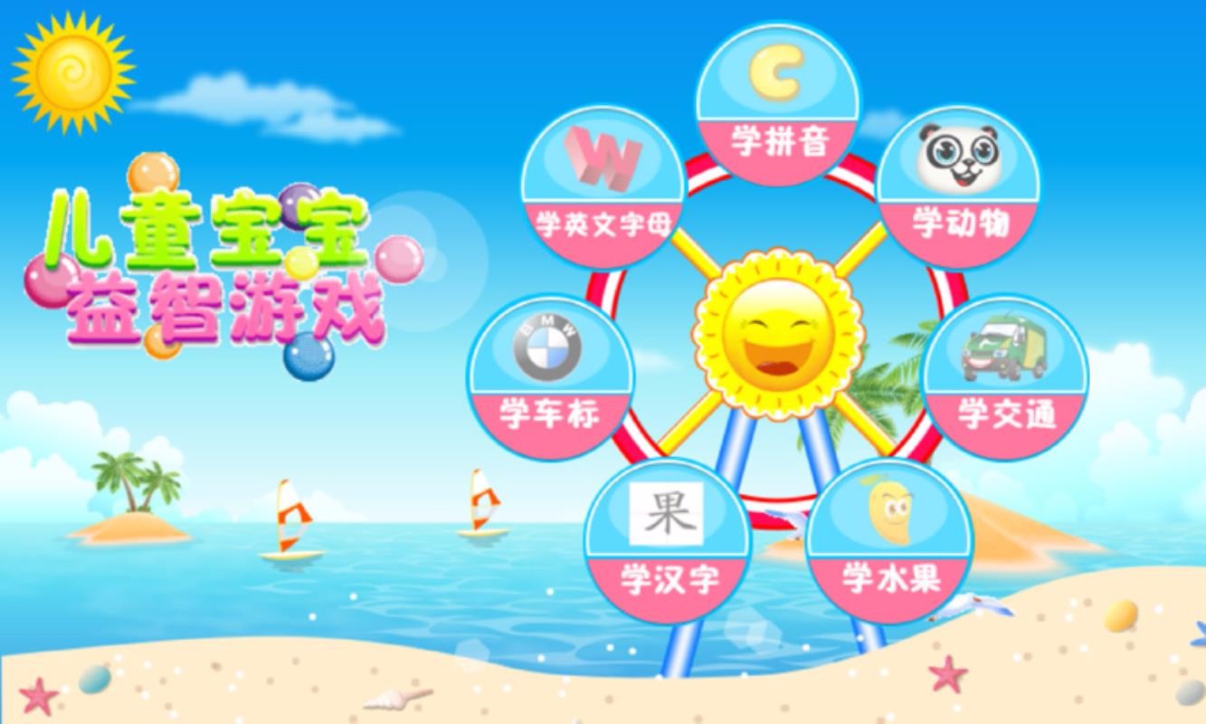 宝宝益智乐园是专门为儿童设计的益智类游戏软件,让儿童在线认识和学习各种事物,并通过游戏的形式进行巩固学习,同时结合该学习形式,更加具有趣味性,可以引起儿童的学习兴趣;该软件主要通过声音和图片的形式传递学习资源,让儿童编辑的学习拼音、英文字母、汉字等,并认识各种动物、交通、水果、车标等,真实和形象的图片,更能让儿童加深学习记忆,同时在学习过程中,可以促进对颜色、形状等信息的认知,所有内容简单易学,游戏过程也简单易操作,使用手指即可完成操作,并且是专门为儿童提供的软件,让儿童轻松操作并进行学习。