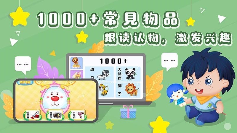 1、跟读图片中的物品,可以在看图的时候收听配音并跟读物品名称;