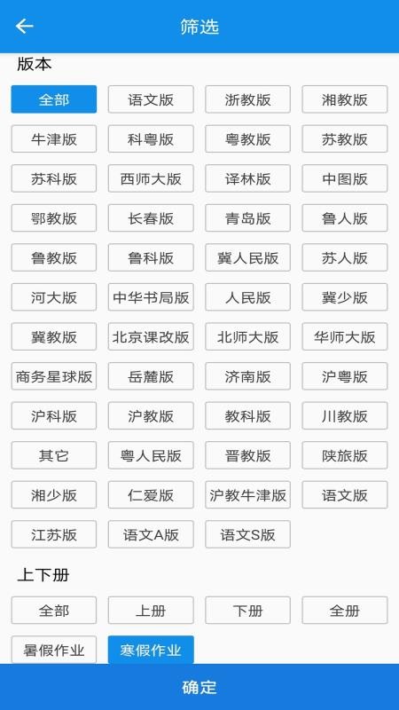 4、提供筛选功能,用户可以在这里找到多种类型的版本和年级,从而快速筛选出自己需要的答案;