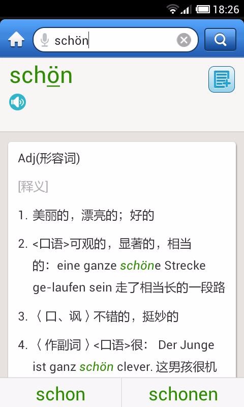 1、支持输入德语或汉语字词进行搜索,也可以录音输入相关内容;