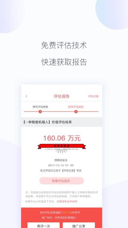 1、技术评估,轻松就能将科学技术上传,让专家为用户进行全面的评估;