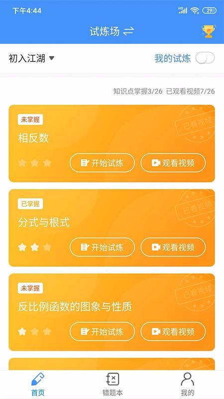 2、直接进入试炼场,立即查看众多数学知识,选择观看对应的视频