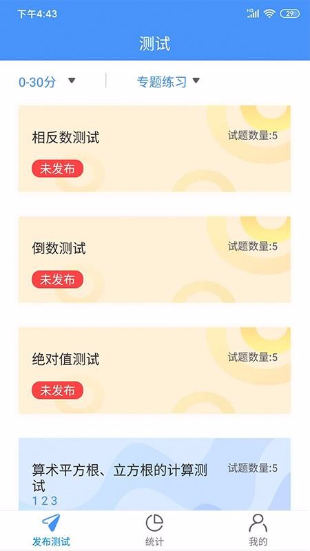 1、可以自主选择相应类型的测试,支持随时进行专题练习,随意测试;