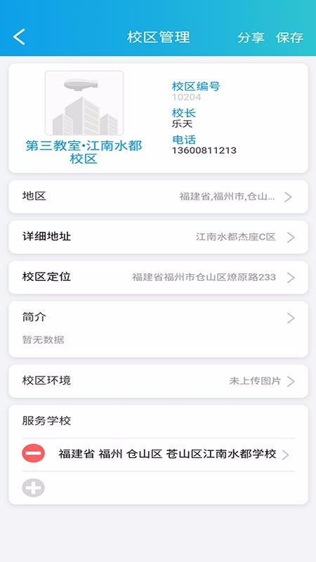 5、详细的记录校区的信息,知道校区的情况,校区管理更便捷,给你更好的管理体验托管教育更专业;