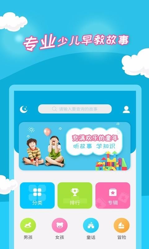 少儿故事是一个会讲故事的app,拥有丰富的故事内容,囊括了0-6岁宝宝爱听的故事资源,比如有童话故事、成语故事、动物故事、科学小知识等,相应的用户可以在该平台中播放音频资源、胎教音乐等进行收听,让儿童便捷的听故事;拥有精细的故事分类,自行按照儿童的年龄进行查找,也可以进入专辑、排行、男孩、女孩等分类专区进行浏览,让用户精确选择合适的故事进行播放;相应的该软件汇总了热门的故事资源,随时更新并展示热播内容,轻松了解大家都在听的故事类型,让你快速选择热门故事进行收听,减少查找的麻烦。