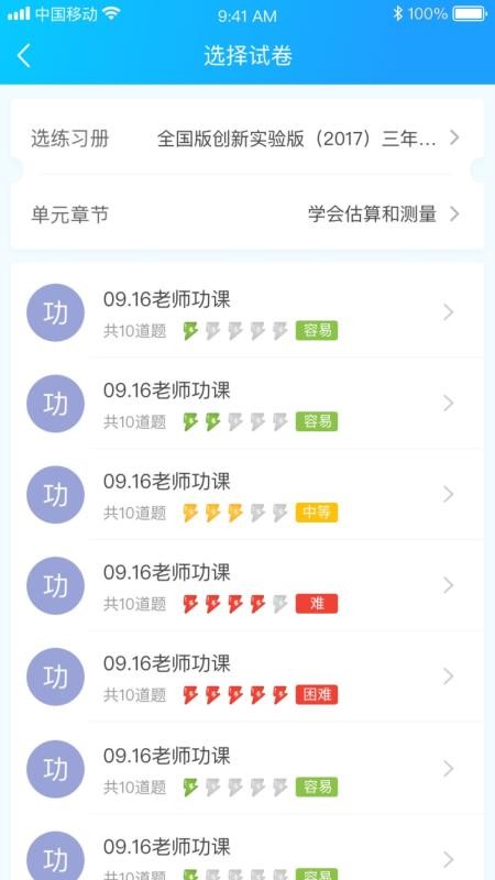 3、在选择试卷界面中,即可快速的选择各种试卷