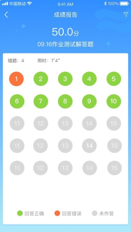 3、成绩报告,根据学生的作答情况,为用户提供了成绩报告,可迅速查看;