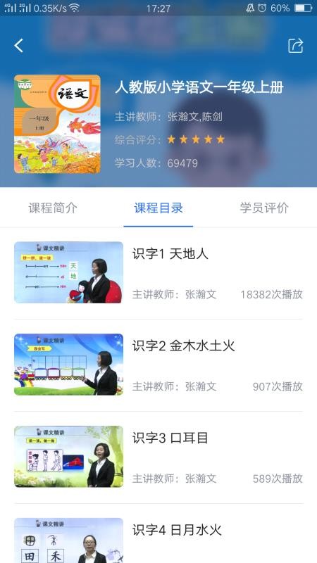 4、在应用的详情页面中,立即查看课程目录、简介和评价的信息