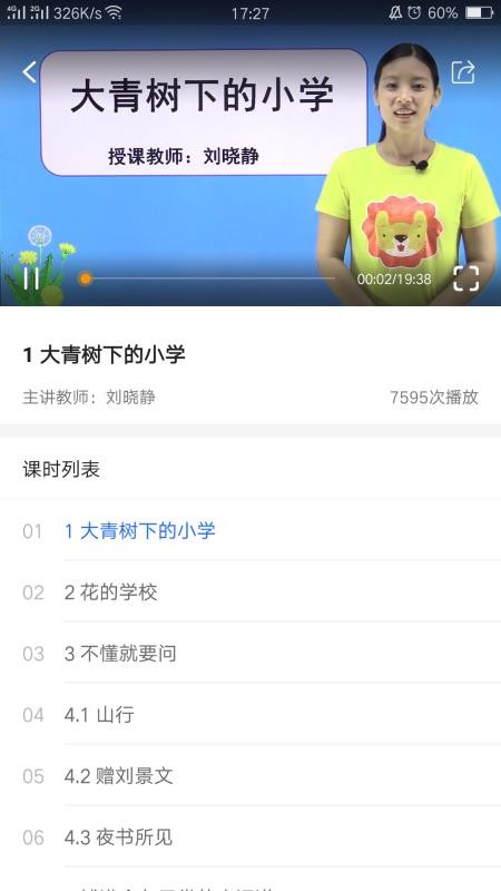 5、点击课程播放,实时在线播放视频, 查看课时列表的信息,点击播放学习