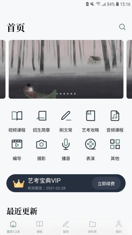 2、在首页中查看最近更新的各种课程信息,通过视频和音频课程在线学习知识