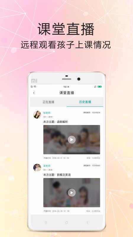 1、随时可以查看历史直播内容,支持家长逐个点击观看;