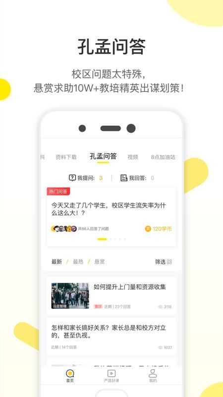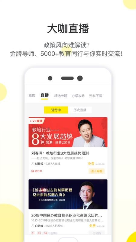教育家社区app是一款为各个教育机构提供服务的软件,让用户能够学习到各种机构经营知识,提高经营收入;应用中有多种功能,用户可以在这里看到各种类型的课程信息,通过课程学习更加高效的办学方法和技巧,降低自己的办学成本,提高办学水平;用户通过软件能够看到各个大咖的直播内容,通过直播了解教育行业实时政策内容,掌握行业发展风向;在这里,用户还可以在线提出自己的各种办学问题,寻求其他精英专家们的在线解答,帮助用户轻松办学;快下载这款软件试试吧,在线学习各种办学知识,提高办学能力。