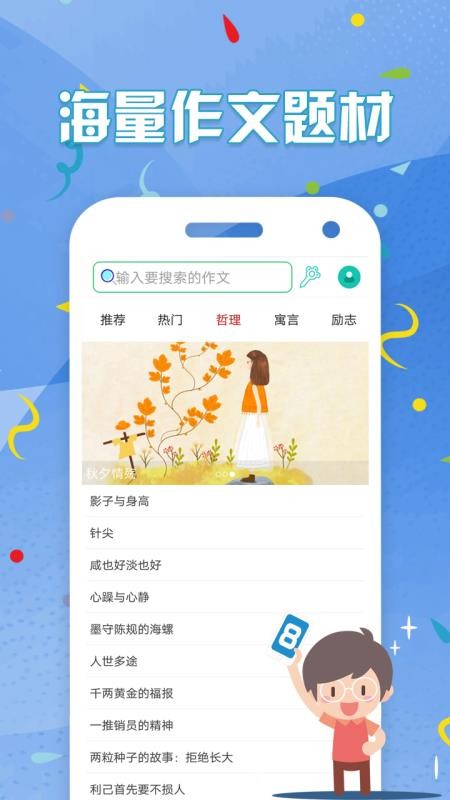 1、在首页中为用户推荐各种优质的作文题材,让用户写出更优秀的文章;