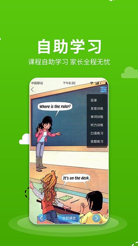 小学语数英点读app是专门针对小学生提供的一款课本点读软件,这里整合了小学阶段所有课程知识,覆盖了各个科目,让你可以在这里随时在线点读生字词、单词、课文内容,更好的学习课本知识,这里还拥有大量的课程,采用了动画教学模式,能够更好的培养孩子的学习兴趣,让孩子们可以轻轻松松的在这里进行学习,得到更好的学习效果;同时这里的学习课程能够实时同步最新的教材,可以更好的方便孩子课前预习、课后复习,有效的提高孩子的学习成绩,更为孩子们提供了各种学习模式,让您可以更加愉快的在这里进行学习。