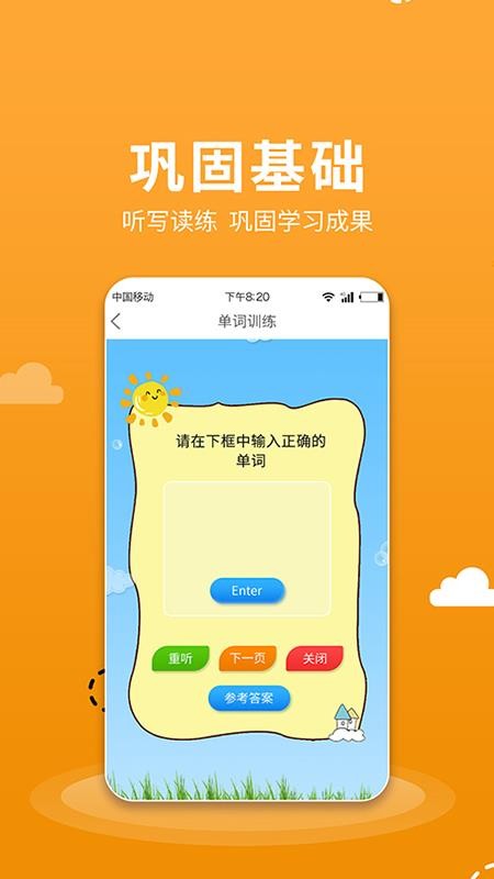 6、为孩子们提供了单词训练、听力练习等功能,能够更好的帮助孩子们加强记忆,强化听力;