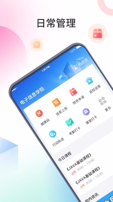 2、拥有各种管理功能,包括安全管理、健康管理、晚归管理、信息管理等;