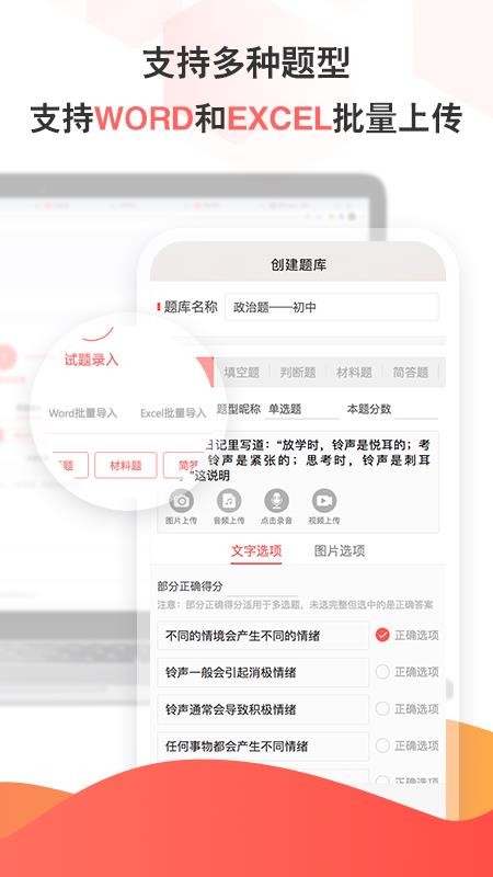 5、支持Word/Excel批量导入试题,方便你快速的打开进行练习,非常的方便;