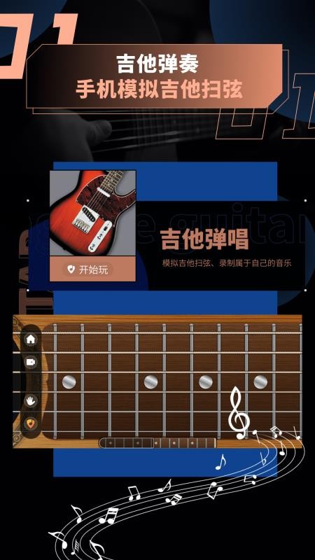2、在手机上即可练习吉他,逼真的琴弦让用户的练习效果更好;