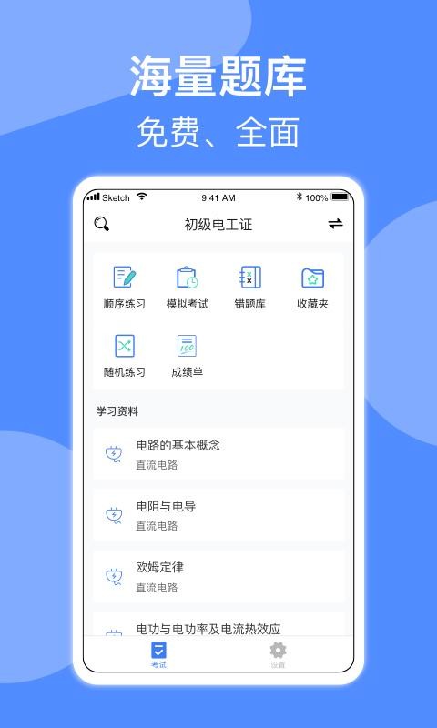 电工考试app是专为电工专业的用户提供的一款手机学习软件,这里能够为用户提供各种丰富的题库资源,包含电工专业多个考试题目,有低压电工作业、高压电工作业、电力电缆作业、防爆电气作业等多项考试科目,还提供了大量丰富的学习资料,让您可以在这里学习到更多相关的知识内容;同时这里还能够为用户提供大量的历年考试真题,让你可以更好的进行了解,制定出针对性的学习计划,从而得到更加有效的学习效果,并且用户随时都可以在这里通过模拟考题的方式检测自己的学习,方便你更好的了解自己的学习情况。