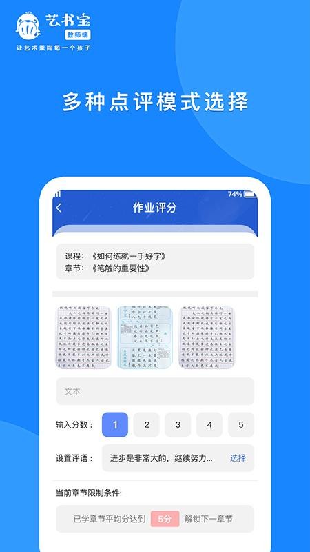 2、实时在线点评学生的作业,结合作业的信息,上传点评的结果;