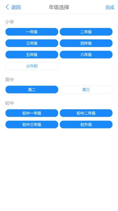 6、返回首页,在年级选择界面中,可选择自己的所处年级