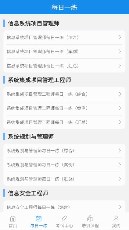 信管网app是一款为中高级软考证书考试人群提供服务的软件,让考生们能够看到各种考试相关信息,在线学习考试知识;应用中有多种功能,用户可以在这里看到各种考试相关的资讯内容,了解更多报考注意事项,从而能够更顺利的进行报考和备考;用户通过软件能够找到各种练习内容,在线练习各种考试题目,通过练习提高自己的考试通过率;在这里,用户还可以找到各种类型的培训和课程,根据需求进行选择学习,从而能够更全面的学习知识;快下载这款软件试试吧,方便快捷的学习各种考试知识内容,了解更多考试信息。