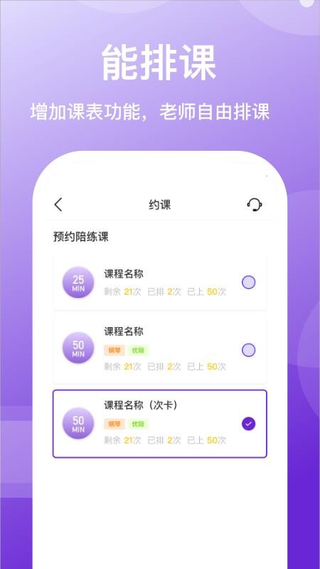 5、根据自己练琴时间来约助教老师上课,让你在平台里能够获得优质的服务;