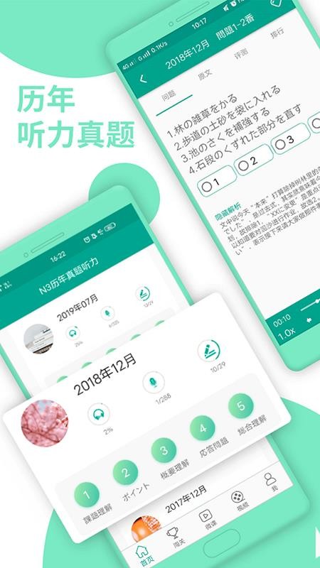 1、为用户提供大量的日语听力历年真题,让用户能够在线进行收听学习;