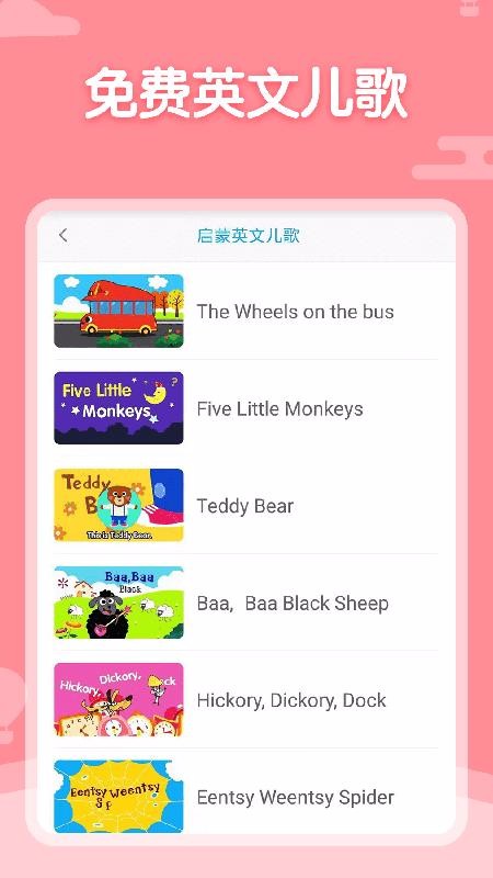 4、收听喜欢的儿歌,从启蒙英文儿歌资源页面中挑选一篇儿歌就能点击播放;