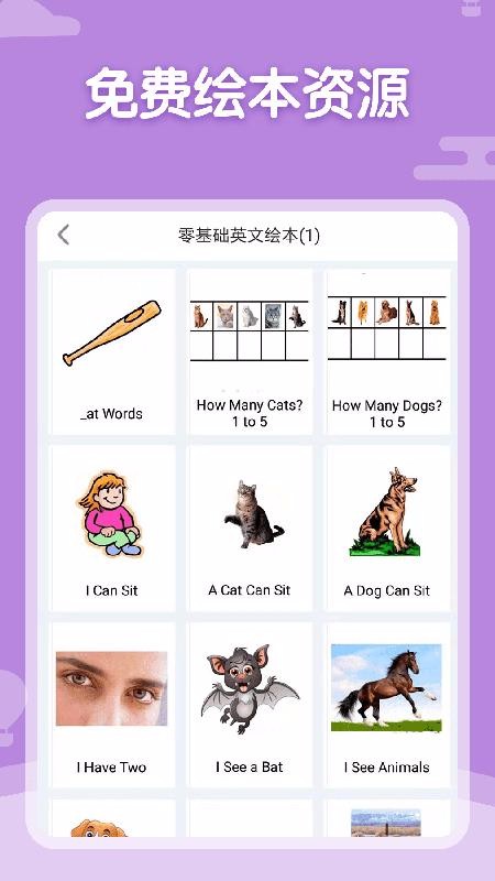 1、看绘本学句子,打开零基础英语绘本页面就能挑选绘本并观看学习句子;