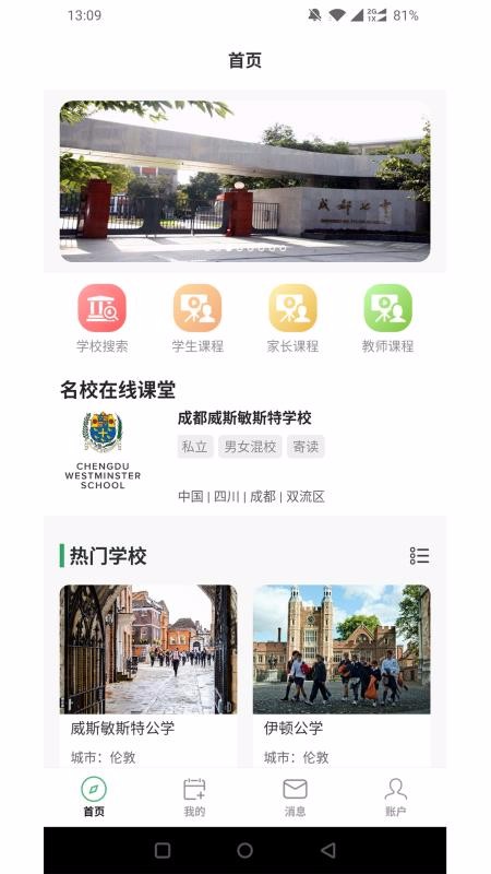 6、可以根据分类选择需要的课程,支持一键关注学校,随时查询信息;
