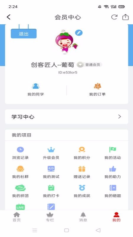 5、在我的页面,选择学习中心、我的项目、我的同学、我的订单等进行查看
