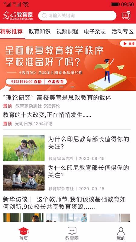 光明教育家app是一款在线进行教育管理的服务软件,让你的教育更全面,提高教育管理的能力,给你更好的教育体验,让教育变得更简单;软件提供了海量的教育资讯,便于选择阅读,提高教育服务的质量,让教育更真实,并将教育的资讯进行分类管理,知道教育的情况,让教育管理更便捷,给你便捷的学习体验;在教育圈将各种动态信息进行记录,知道更多教育的信息,对教育有全面的了解,提高教育管理的质量;将个人的信息进行完整的展示,知道信息的情况,提高个人信息的完整度,还有各种话题的讨论,让教育交流更有趣,提高教育的质量。