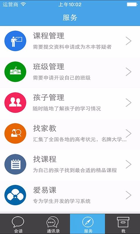 众讯通是专门为家长和老师提供教育服务的软件,在线即可为学生找家教、课程等,也可以进行即时沟通;自行添加好友在通讯录中进行管理,可以设置分类项目,包括教师、家长、好友、孩子等分类,便捷的进行沟通;老师可以在该平台中申请并开设自己的班级,邀请学生或家长进行加入,便捷进行班级管理;在线查找到合适的课程或家教之后,即可进行在线上课,并随时随地查询孩子的学习情况;老师可以提交资料进行申请,便捷成为答疑者,并进行课程管理,随时为学生解决问题;还可以通过该软件成为创业者,通过分享课程进行赚取收益,随时可以查看收入并申请提现。