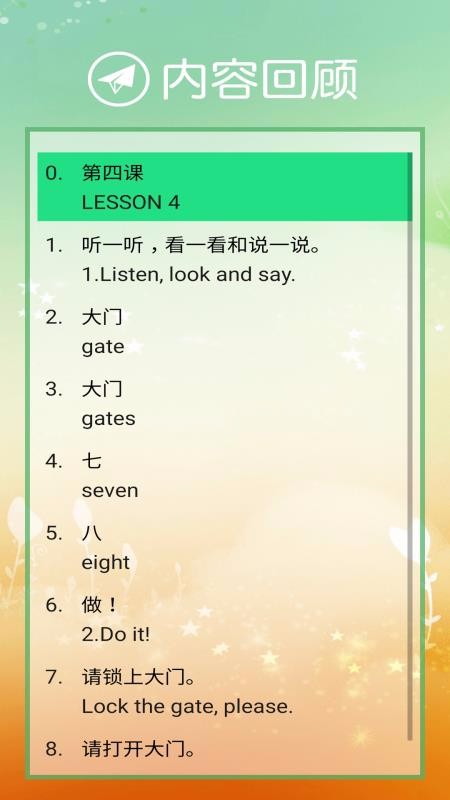 6、回顾课文学习内容,点击课文中的内容回顾功能就能大致回顾学习过的知识;