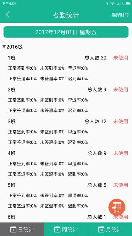 5、进入考勤页面,可以查看当天各个班级签到上课的人数情况