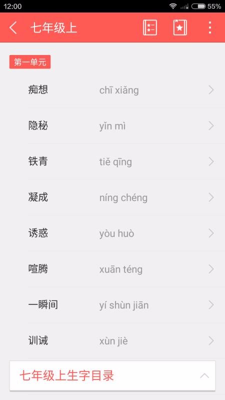 3、推送中考生字本,可以直接浏览重点生字,能够完整全面的学习;